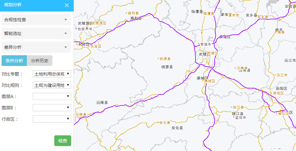 三、智能化的辅助规划分析服务:基于统一的国土空间“底板”,提供智能化的规划冲突检测、合规性分析、智能选址分析,为建立“用数据说话、用数据决策”的国土空间规划管理机制提供技术支撑。